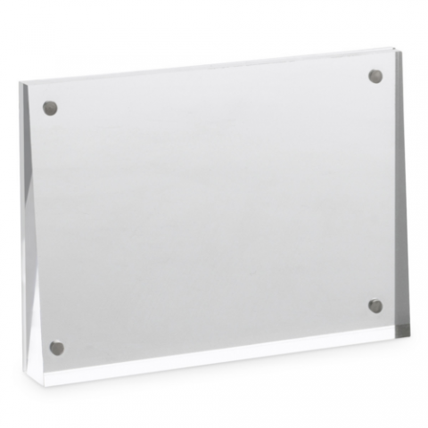 Angled Acrylic Table Sign, Magnetized, 5" X 7" X 1", landscape orientation