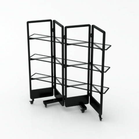 Nexus Back Bar Display Unit, 63" x 19.75" x 80.75", clear plate glass, black 304 stainless steel