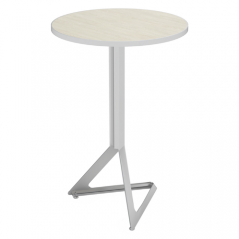 Nexus Cocktail Table, 30" dia. X 42"H, Round, Stainless Steel Silver Frame, Oak Laminate Top, Triangle Base