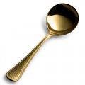 Positano Bouillion Spoon, 6.3", 18/10 Stainless Steel, Gold PVD, Hammered Finish