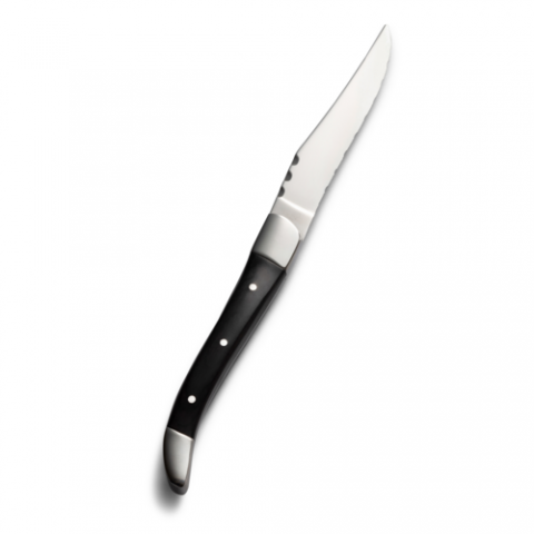 Laguiole Steak Knife, 8-7/8" OL, 4" blade, 13/0 stainless steel blade, black wood handle
