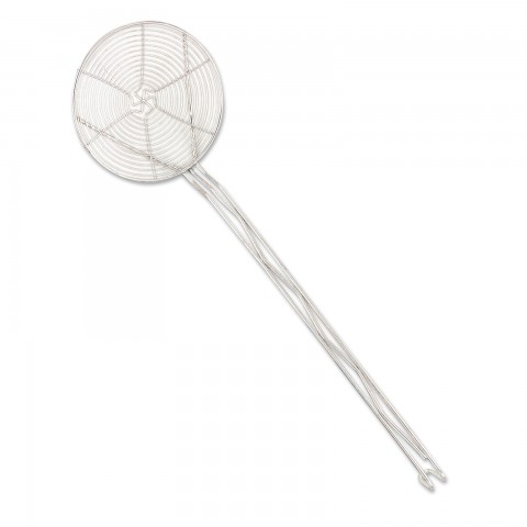 Skimmer, 6" dia. x 17-3/5"L handle (23-1/2" O.A.L.), hooked handle, coarse mesh, spiral wire, nickel-plated