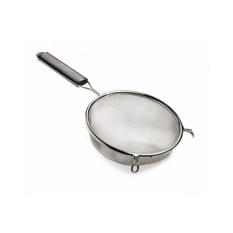 Strainer, 7-1/4" bowl, single fine mesh, plastic handle, wire rim with drainage hole, rust resistant, dishwasher safe, stainless steel