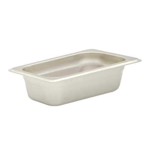 Steam Table Pan, 1/9 size, 0.8 qt., 6-7/8"L x 4-1/4"W x 2-1/2" deep, solid, reinforced edge & corners, anti-jam, 22 gauge, 304 stainless steel, NSF