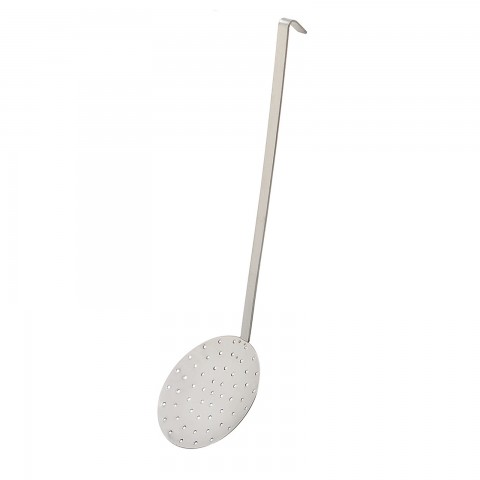 Skimmer, 6" dia. x 13-7/10"L, hooked handle, stainless steel, polished finish