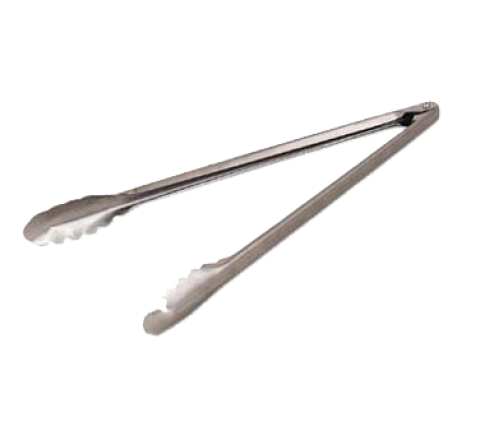 Utility Tongs, 12", coil spring operated, scalloped edges, 1.2 mm thickness, stainless steel, mirror finish (individually poly-bagged)