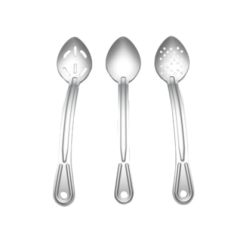 Renaissance Basting Spoon, 15"L, slotted, heavy duty, curved handle, 1.75 mm thickness, stainless steel, satin finish