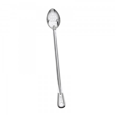 Serving Spoon, 18"L, perforated, extra long reinforced handle, deep groove, 1.5 mm thickness, stainless steel, mirror finish