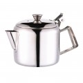 Teapot, 12 oz., 4" x 4", economy, includes strainer, stainless steel, mirror finish