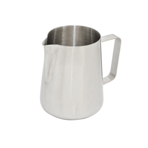 Contemporary Milk Frother, 32 oz., 5-3/4" x 5", tapered spout, wide bottom, large handle, dishwasher safe, 18/8 stainless steel, mirror finish