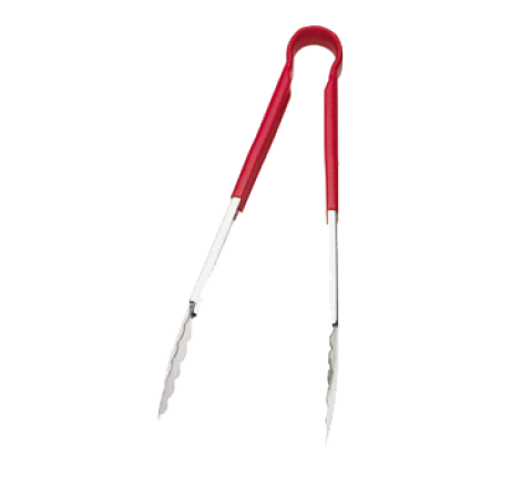 Tongs, 12"L, one-piece, 1.0 mm thickness, stainless steel with PVC coating, red