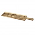 Serving Board/Flight, 19" x 5-7/10", rectangular, with handle, reversible: smooth/with (3) round wells to hold Thermalloy® mini cast iron or a variety of serving dishes, acacia wood, food-safe protective mineral oil sealant
