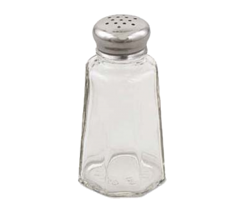 Salt & Pepper Shaker, 2 oz., 2" x 3-3/5", universal holes, paneled glass jar with stainless steel top (6 dozen per case)