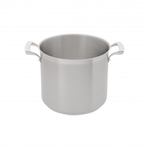 Thermalloy® Stock Pot, 12 qt., 10-3/10" dia. x 8-4/5"H, deep, without cover, (2) oversized stay cool hollow cast riveted handles, operates with gas/electric/ceramic/halogen/induction, stainless steel with 1/4" aluminum core, natural finish, NSF (cash & carry packaging)