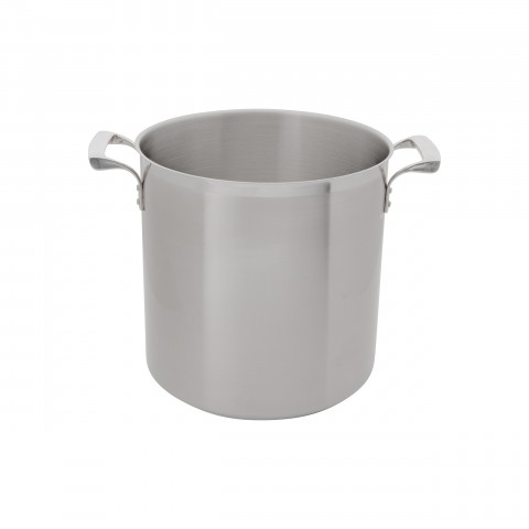 Thermalloy® Stock Pot, 32 qt., 13-3/10" dia. x 13-3/10"H, deep, without cover, (2) oversized stay cool hollow cast riveted handles, operates with gas/electric/ceramic/halogen/induction, stainless steel with 1/4" aluminum core, natural finish, NSF