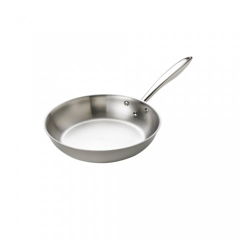 Thermalloy® Fry Pan, 8" dia. x 1-1/2"H, without cover, handle with off-set rivets, operates with gas/electric/ceramic/halogen/induction, tri-ply stainless steel with aluminum core, natural finish, NSF (cash & carry packaging)