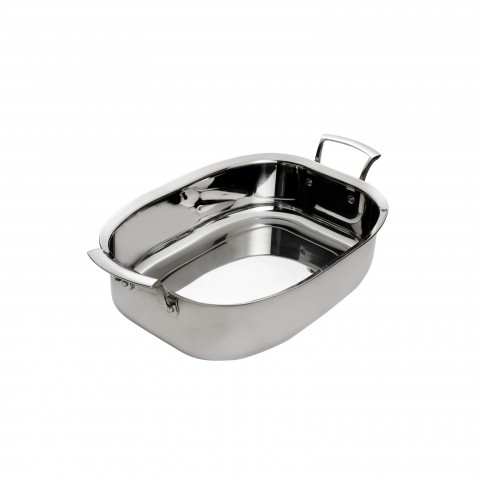 Thermalloy® Roast Pan, 2.6 qt. (2.46 liter), 12" x 10-2/5" x 2", oval, without cover, (2) riveted ergonomic handles, operates with gas/electric/ceramic/halogen/induction, tri-ply stainless steel with aluminum core, natural finish, NSF (cash & carry packaging)