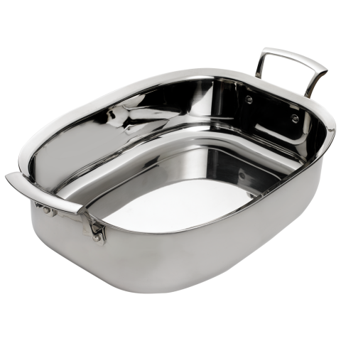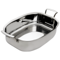 Thermalloy® Roast Pan, 7 qt. (6.6 liter), 14" x 10-1/5" x 3-7/10", rectangular, without cover, (2) riveted ergonomic handles, operates with gas/electric/ceramic/halogen/induction, tri-ply stainless steel with aluminum core, natural finish, NSF (cash & carry packaging)
