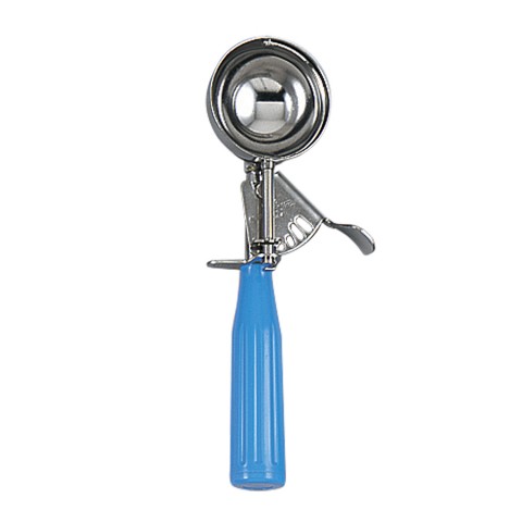 Standard Disher, size 16, 2.25 oz., one-piece, size stamped on bowl knife blade, 18/8 stainless steel bowl, ribbed polypropylene handle, blue, NSF (individually boxed)