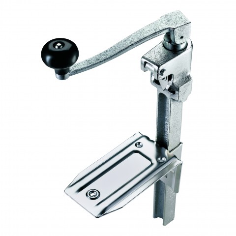 Can Opener, 13", table mounted, heavy duty, for cans up to 11"H, heat treated gears, reversible blades, plated steel mounting plate, cast iron shaft