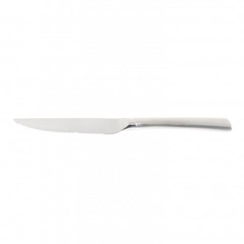 Tournedo Steak Knife, 9-1/2", serrated, pointed blade tip, hollow handle, mirror polish bolster, stainless steel, satin finish