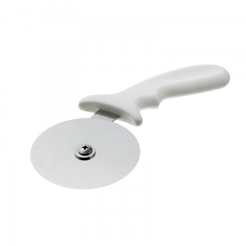 InnovaTools® Pizza Cutter, 9-1/2" OAL, 4" dia. German carbon steel blades, heat treated and tempered for durability, 5" white heat resistant polypropylene handle for up to 150C / 305F, handle with HACCP color coding system, includes handle clips in red, brown, yellow, green, white, blue and purple, dishwasher safe, NSF (cash & carry packaging)