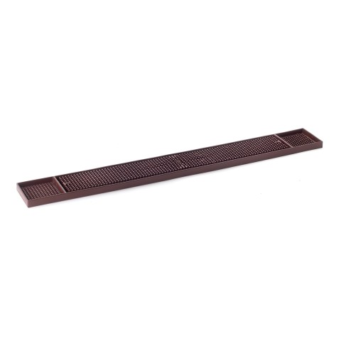 Bar Drainer/Mat, 27"L x 3-3/10"W, rectangular, well at both ends, rubber, brown
