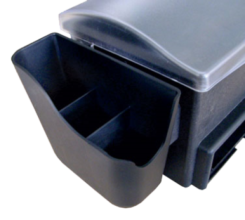 Side Accessories Compartment, set of 2 (left & right) 3-section, 6"L x 2-1/3"W x 5-1/2"H, for straws, picks, & stirrers, polystyrene, black
