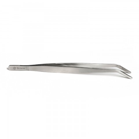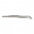 Precision Tongs, 8"L, curved, serrated tip, stainless steel