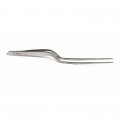 Precision Tongs, 8"L, offset, serrated tip, stainless steel