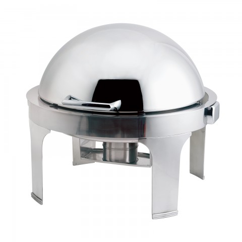 Harmony Chafer, full size, 7 qt., 22-1/2" x 20", round, includes: food pan, (1) fuel holder, 4" deep water pan, cover has built-in stop at 140° for single-side serving and fully retracts to 180° for two-side serving, cover removes without tools for cleaning, automatic tension adjuster, mounting studs for electric heater, stainless steel, mirror finish