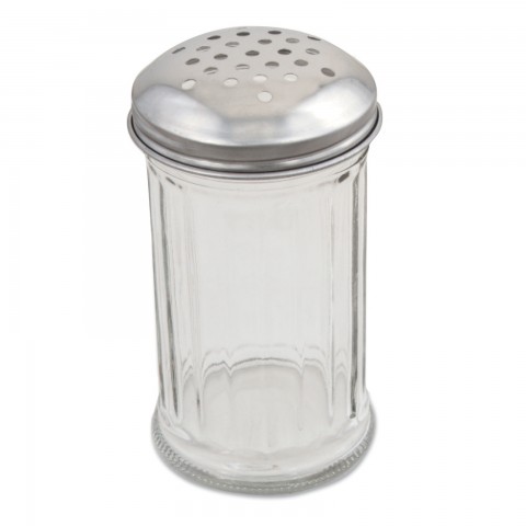 Cheese Shaker, 12 oz., 3" dia. x 5-3/5", clear plastic with stainless steel perforated top (must be purchased in quantities of 1 dozen)