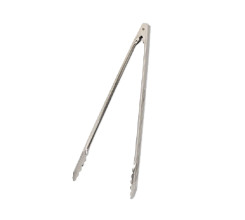 Utility Tongs, 16", standard, coil spring operated, scalloped edges, 0.5 mm thickness, stainless steel, mirror finish (individually poly-bagged)