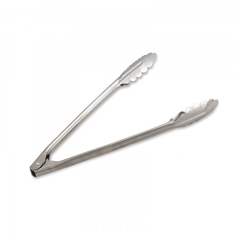 Utility Tongs, 12", coil spring operated, scalloped edges, 1.0 mm thickness, stainless steel, satin finish (individually poly-bagged)