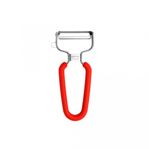 Y Peeler, dual serrated blade with blade protector, integrated side cutter, soft TPE coated handle, Japanese stainless steel blade