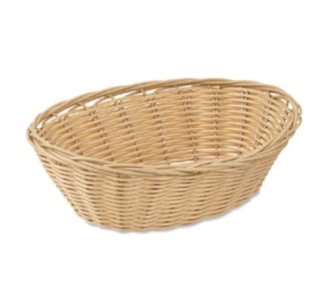 Basket, 9" x 7" x 3", oval, wire reinforced tops, bottom & ribs, non-absorbent, dishwasher safe, polypropylene, tan