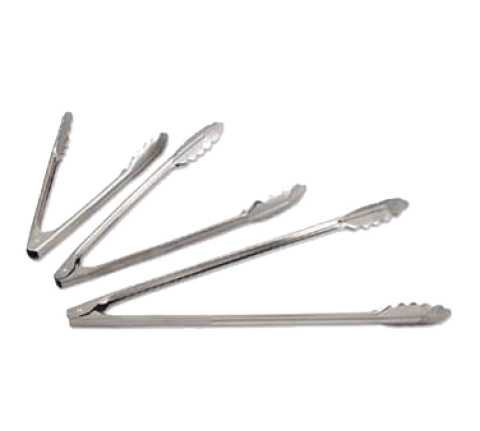 Utility Tongs, 9-1/2", coil spring operated, scalloped edges, 1.0 mm thickness, stainless steel, mirror finish (individually poly-bagged)