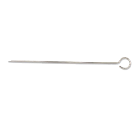 Skewer, 12"L, round wire loop handle, pointed tip, stainless steel, polished finish