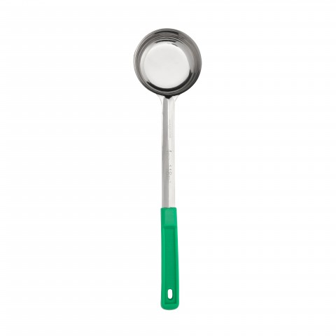 Food Portioner, 4 oz., 10-4/5"L, solid, one-piece, heat resistant to 392° F (200° C), polypropylene handle, 1.0 mm thickness, stainless steel, green