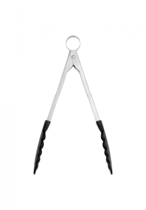 CUISIPRO Locking Tongs, 11" L X 1.12" W X 1.5" H, Non-stick nylon head, patented locking pull mechanism, push/pull locking mechanism, tongs can be opened with one hand, loop for hanging, stainless steel, dishwasher safe
