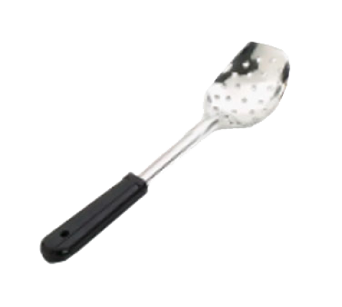 Serving Spoon, 13", perforated, 3-sided, black rounded polypropylene handle, hanging hole, 1.5 mm thickness, stainless steel