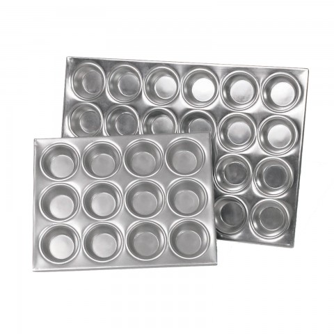 Muffin/Cup Cake Pan, 10-3/4" x 14-1/10" x 1-1/5", holds 12 cups, top cup 2-3/4", bottom cup 2", 1-3/16" deep permanently seamed cups, aluminum