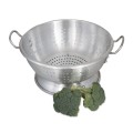 Colander, 15.1 qt., 16" dia. x 7-1/4" deep, 3/16" holes, riveted handles, rounded edges, stand alone base, 3.0 mm thickness, heavy-duty, aluminum