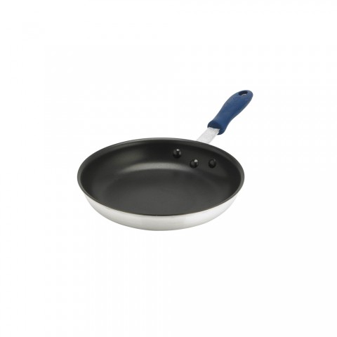 Thermalloy® Fry Pan, 7" dia. x 1-3/10", without cover, handle with off-set rivets, ergonomic removable blue silicone heat resistant sleeve (to 572°F), operates with gas/electric/ceramic/halogen, standard weight, 8 gauge, aluminum, Eclipse® non-stick coating, NSF