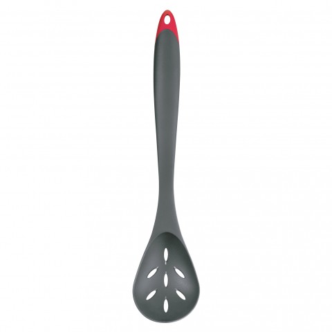 Cuisipro Spoon, 11-1/4", slotted, heat resistant up to 480°F (250°C), red hanging loop, fiberglass, black