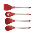 CUISIPRO Tool Set, 12.6" L X 3.94" W X 3.15" H, Includes: Ladle, Turner, Spoon & Slotted Spoon, Black, Heat resistant up to 425 F/220 C, odor resistant, stain resistant, red silicone heads, ergonomic stainless steel handle, dishwasher safe