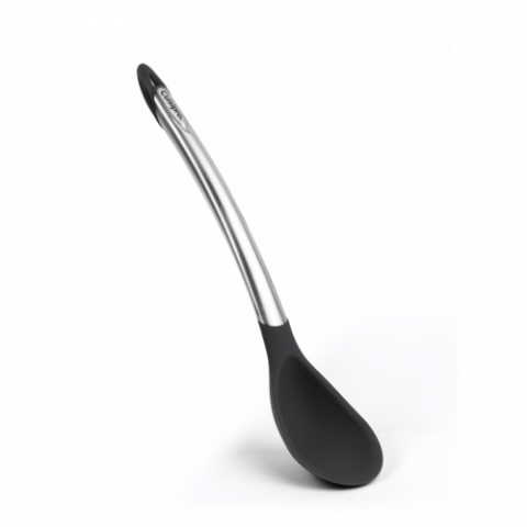 CUISIPRO Spoon, 12"/30.5cm, 12" L X 2.5" W X 1.5" H, Heat resistant up to 425 F/220 C, odor resistant, stain resistant, black LFGB silicone, ergonomic stainless steel handle, dishwasher safe