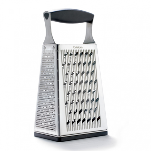 CUISIPRO Box Grater 4-Sided SS (Surface Glide Technology), 4.75" L x 3.5" W x 9.5" H, Surface Glide Technology™ grates with less effort, secure grip for safety, ergonomic handle with non-slip finish, rust-resistant, dishwasher safe