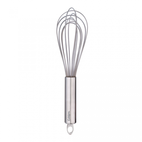 CUISIPRO Balloon Whisk Stainless Steel 12", With Non-Stick Frosted Coating, 12" L x 3.25" W x 3.25" H, Flexible silicone wires, eyelet for hanging, heat resistant to 425 F / 220 C, will not scratch bakeware, sealed cap, brushed stainless steel tube handle, dishwasher safe