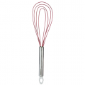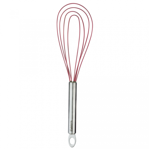CUISIPRO Flat Whisk Stainless Steel 10", With Non-stick Red Coating, 10" x 3" x 0.8", Heat-resistant to 425 F / 220 C, non-stick, flexible silicone whisk wires, hangable with eyelet, brushed stainless steel tube handle, sealed cap prevents food from getting stuck in wires